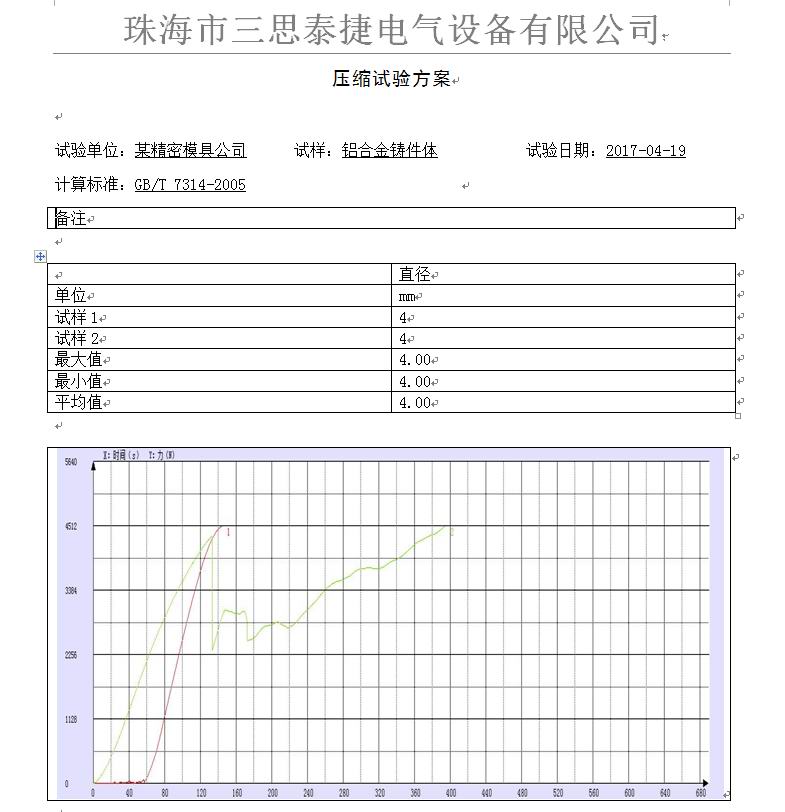 ?某精密模具公司的鋁合金鑄件試驗機壓縮GB/T 7314-2005